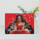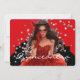 This modern style 5x7 size invite is shown created in a red and black color scheme with a young lady.