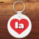 Dieser Schlüsselanhänger besticht durch ein lebhaftes rotes Herz mit den fett-weißen, abgerundeten Kleinbuchstaben la, einer spielerischen Abkürzung für Louisiana, den pelikanischen Staat, OR Los Angeles, die Stadt der Engel.