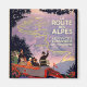 Die Route des Alpes Services automobiles de tourisme de la mer à la haute montagne. Reiseplakat für Frankreich mit einem Touristen- und Reiseführer in einem PLM (Compagnie des chemins de fer de Paris à Lyon et à la Méditerranée) Tourbus mit Route von Nizza nach Evian und darüber hinaus.