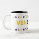 Celebra tu orgullo y esperanza en Venezuela con esta taza única que combina los colores de la bandera (amarillo, azul y rojo) y el inspirador mensaje “La Transición ya empezó”.