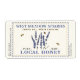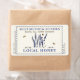 Blasses Elfenbeinetikett mit blau gepunkteter Grenze und Vintager Lavendel mit Bienen. Blauer Text