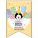 Machen Sie Ihren Geburtstag mit einem schwarz-weißen Labradoodle ganz besonders mit unserem bezaubernden Hundeschema mit einem Party-Hut und farbenfrohen Ballons.