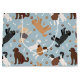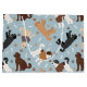 Niedliche Labradoodle / Goldendoodle Hunde sitzen und stehen und rollen mit Creme, Aprikose, Schokolade, Schwarz- und Parti-Mäntel mit verstreuten Hundeknochen und Pappprints Muster.