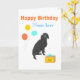 Ein schwarzer Hund, Ballons ein Geschenk, Happy Birthday, fügen Sie den Namen vor, und Ihren Text innen, Geburtstagskarte für jede Person.