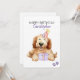 Herzlichen Glückwunsch zum Geburtstag mit einem personalisierten Namen. Eine niedliche Labradoodle Welpenhundeillustrierung mit einem Geburtstagshut und Ballons. Fügen Sie Ihre eigene Nachricht für eine persönliche einzigartige Karte hinzu. Kunst aus Aquarellen.