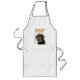 Liebe labradoodles? Die Linie, die zeichnet - schwärzen Sie Malerei eines Hundes mit Tinte, der entlang Sie anstarrt. In diesem Fall auf einer Schürze, bitten machen Sie "Hundeplätzchen". Grau- und Goldakzente. Schwarzer Hund.
