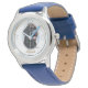 Kinderuhr aus Edelstahl mit blauem Lederarmband
