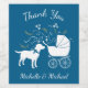 Bringen Sie das große Schwesterfellbaby in das Fest mit diesem hübschen Labrador Hund Babydusche-Design! Ideal für einen kleinen Liebhaber, der unterwegs ein Baby hat. Der Labrador befindet sich neben einer bezaubernden Vintagen Kutsche. Das Blau macht es perfekt für einen kleinen Jungen auf dem Weg!