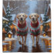 This festive design captures the joyful spirit of the holiday season, featuring an adorable dogs.Nestled in a winter wonderland, complete with a decorated Christmas tree, and beautifully wrapped presents. Snowflakes gently fall, adding a magical touch to the scene, while the vibrant colors of the holiday decorations create a warm and cheerful atmosphere.