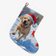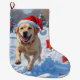 Labrador Hund läuft im Schnee mit Weihnachtshut Großer Weihnachtsstrumpf