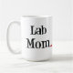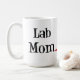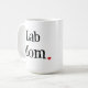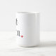 Weiße Tasse mit schwarzem Text und einem kleinen roten Herzen