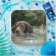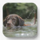 Diese Teller haben ein Bild von einem Labrador, der auf ihnen schwimmt.