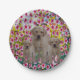 Auf blühendem Hintergrund sind drei Welpen aus Labrador in einer Ölfarbe abgebildet
