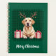 "This beautiful illustration features a detailed portrait of a loving Yellow Labrador Retriever with its characteristic broad head, gentle expression, and smooth golden coat. The dog is given a charming holiday touch with reindeer antlers adorned with small golden and green/blue ornaments. Two beautifully wrapped Christmas presents with red ribbons sit prominently on either side. This high-quality graphic is ideal for personalized holiday gifts for Lab owners, Christmas cards, apparel, ornaments, or any product celebrating this friendly and devoted dog breed."