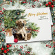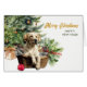 Auf dieser Urlaubskarte legt ein gelber Labrador Retriever Hund in seinem Korbbett aus Korbweide vor einem verzierten Weihnachtsbaum. Hinter dem Korb befindet sich auch ein hübscher roter Strauß- und Pinienbouquet. Der goldene Text auf der rechten Seite sagt "MERRY CHRISTMAS", mit GLÜCKLICHEM NEUEN JAHR in grün darunter. Der gesamte Text, innen und außen, kann leicht auf alles geändert werden, was man möchte. Sie können mehr Labrador Retriever Bilder sehen, wie auch andere Aufnahmen der Rasse, im Dog Village.