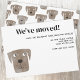 Mit einem lustigen und sonderbaren Schokolade-Hund Labrador Retriever, ideal für Hundefreunde, die wollte, ihre spannenden Neuigkeiten mit einer Touch Spaß zu teilen. Die Vorderseite ist mit einem skurrilen Aquarellgemälde eines frechen Nachwuchses versehen. Die Rückseite ist so konzipiert, dass sie mit einem Schokolade-Labrador-Muster übereinstimmt, um einen zusammenhängenden Look zu schaffen. Egal ob Sie durch die Stadt oder durch das Land ziehen, diese Ankündigung ist eine großartige Möglichkeit, Ihre Freunde und Familie über Ihre neue Adresse behalten. Bereiten Sie sich vor, Ihren Schwanz in Begeisterung zu schwingen!