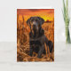 Genießen Sie den rustikalen Charme des Erntedanks mit unserer atemberaubenden Karte, die einen Labrador Retriever in einem Erntefeld als die Sonne Sets im Hintergrund zeigt. Teilen Sie die Wärme und Schönheit des Urlaubs mit Ihren Lieben durch diese exquisite Karte.