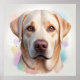 Ein bezauberndes Portrait eines Labrador Retriever, umgeben von magischer und skurriler Aquarellkunst, entworfen, um jedem Raum oder Geschenk Charme zu verleihen.