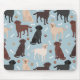 Niedliche Labrador Retriever Hunde in den Farben Schwarz, Schokolade, Rot und Gelb. Labrador Hunde mit Pfotenabdruck und Hundeknochenmuster.