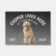 Labrador Retriever Personalisiert Dog Liebhaber willkommen vor der Tür. Diese Begrüßungsmatte kann mit dem Namen Ihres Hundes personalisiert werden, der Slogan kann auch geändert werden oder Sie können ein Foto Ihres eigenen Hundes verwenden (stellen Sie sicher, dass es transparent ist). Text liest: Cooper lebt hier... Alle Leckereien begrüßen das Bearbeiten des Designs, um den Schriftart, die Farben und die Hintergrundfarbe zu ändern. Verwenden Sie beim Ersetzen des Hundes ein transparentes Bild. Ein wunderbares Geschenk für ein Party, Ferien, Hundefreunde und für jeden Anlass.
