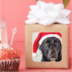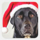 Niedlicher Labrador Retriever mit einer Weihnachtsmannmütze.