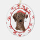 An der Vorderseite dieses Holiday-Ornament ist ein wunderschönes Aquarellbild eines schokoladen Labrador Retriever mit einer rot-weiß gestreiften Weihnachtsmannmütze. Das Bild wird auf einem roten Oval gerahmt durch ein Retro-rotes Schneeflockenmuster auf einem weißen Rand platziert. Die Rückseite des Ornaments hat den gleichen Hintergrund und oval mit Ihrem benutzerdefinierten Text in Weiß auf einem passenden roten Hintergrund. Wunderschön, besonders für jemanden, der einen Labrador Liebe!