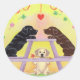 Whimsikisches und lustiges Labrador Valentinstag Gemälde von Naomi Ochiai. Adorable Black Lab und Schokolade Labrador finden süße Liebe. Gelbe Labrador Puppy Cupid ist im Lieferumfang enthalten. Schön für Hundefreunde, die Liebe Labrador Retrievers. Ideal für den Valentinstag. Design der Puppy-Liebe. Labrador sind die Besten!