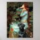 Ophelia (sitzend) von John W. Waterhouse (1898), angepasst an einen schwarzen Labrador Retriever. Dieses Gemälde basiert auf Shakespeares Ophelia.