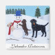 Whimsical Labrador Retriever Gemälde von Naomi Ochiai aus Japan. Schön für Hundefreunde, die Liebe Labrador Retriever Hunde. Der gelbe Labrador und die Schokolade Labrador und der schwarze Labrador sind alle im Bild gemalt. Drei Labrador Hunde spielen mit ihrem Schneemann auf dem weißen Schneefeld. Typische Weihnachtssaison-Szene. Sie können Text und mehr anpassen! Besuchen Sie unseren Labrador Weihnachtsschmuckladen!
