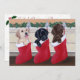 Weiße und niedliche Labrador Retriever Gemälde von Naomi Ochiai aus Japan. Alle drei Farben von Black Labrador Puppy und Schokolade Labrador Puppy und Yellow Labrador Puppy sind im Bild gemalt. Sie spielen in ihren roten Santa-Strümpfen, die an dem gut dekorierten Kamin hängen. Happy und niedliche Labrador Weihnachtsmalerei mit Urlaubsgeist. Sie können Text und mehr anpassen oder hinzufügen!