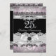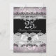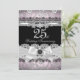 Einladung zum 25. Geburtstag von Silver & Pink. Eleganter schwarzer Spitzen- und Silberperlenbogen. Bitte beachten: Alle flachen Bilder!