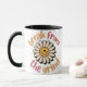 Eine Kaffee-Tasse mit einer Smiley-Blume, wobei sich der Begriff "Break from the Grind" um das Bild dreht. Das Design lässt einen fröhlichen und aufregenden Ausweg aus dem täglichen Stress erwarten.