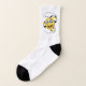 "Der Volleyballplatz ist mein Happy Place", die Strümpfe für Frauen mit einem Volleyball-Emoji mit blau-weißen Volleybällen für Augen und blauen, gelben und weißen Volleybällen - ihr Name ist individuell einstellbar - von katz_d_zyens