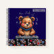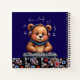 Ein lustiges Notebook mit einem lächelnden, fröhlichen Grizzly Bären DJ mit großen Kopfhörern und Musikangebot auf Turntable. Musik-Dschungeltexte und Noten, die herumschweben.