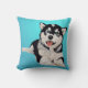 Lächeln Husky Welpe gegen schöne Aqua Kissen