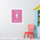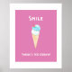 Lächeln Da ist Eiscreme! Motivierendes und inspirierend Zitat mit rosa Hintergrund und leckerem Eis. Eiscreme, saftige, farbenfrohe Aquarellbilder und süße Dekorationen.