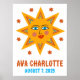 Lächeln Retro Sun CUSTOM BABY NAME BIRTHDATATE Art Poster
