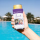 Seltzer Ärmel, kann kühler. Hinzufügen von Initialen und zwei Fotos. Streifen und Punkte. Diese beiden lassen mich immer lächeln. Lila und weiß.