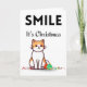 Eine niedliche Weihnachtskarte mit einer gruseligen Katze und Dekorationen.