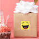Dieses fröhliche, kleine Emoji Gesicht wird bestimmt jedem ein Lächeln auf das Gesicht legen. Super lächelndes Gesicht mit hellgelbem Hintergrund.
