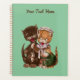 Dieser Planer ist minzgrün, mit einer lächelnden gelben Lady Katze, die einen weißen Hut trägt, der Ratten von ihrem Holzkorb zu ihrem braunen männlichen Katzenfreund gibt. Passen Sie Ihren Text auf der Vorderseite mit der Vorlage an.