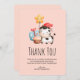 Flat danke Ihnen Karte mit einem bezaubernden Bild mit einer lächelnden Kuh, mit einem goldenen Sternballon und etwas Kuchen und ein Geschenk.