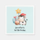 Papierservietten mit einem bezaubernden Bild mit einer lächelnden Kuh, einem goldenen Sternballon und etwas Kuchen und einem Geschenk.