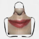 Lächelnde Lippenstift rote verführerische weibliche Lippen nahe Schürze