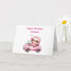 Geburtstagskarte mit einer skurrilen Abbildung. Ein rosa Faultier, das in einem rosa Cabrio herumfährt. Schön.