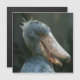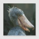 Im nahen-up lächelt ein Schoebill mit offenem Schnabel, der einen Blick auf seine Zunge freigibt. Der majestätische Vogel strahlt Charme und Pracht aus und besticht durch seine imposante, aber freundliche Präsenz.