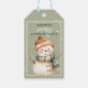 Niedlicher Schneemann in bräunlicher Hut und grün gestreiftes Scarf CHRISTMAS GIFT TAG!