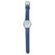 Kinderuhr aus Edelstahl mit blauem Lederarmband