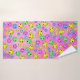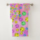 mehrfarbig lächelnde Emoji-Gesichter auf einem pinkfarbenen Handtuchhandtuch-Set