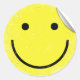 Diese Aufkleber haben ein Retro-aussehendes gelbes, lächelndes Gesicht mit Kanten, die so aussehen, als wären sie gefalten. Es hat auch eine Ecke, die aussieht, als würde sie sich abschälen. Will man, die weiße Hintergrundfarbe zu ändern, können diese Aufkleber angepasst werden.